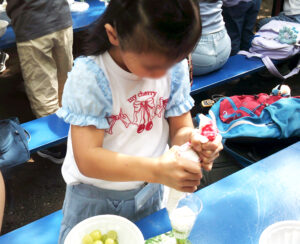 午後からは、オリジナルのパフェづくりに挑戦。どうしたら綺麗にパフェが作れるかを真剣に考えながら、