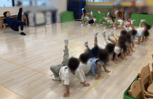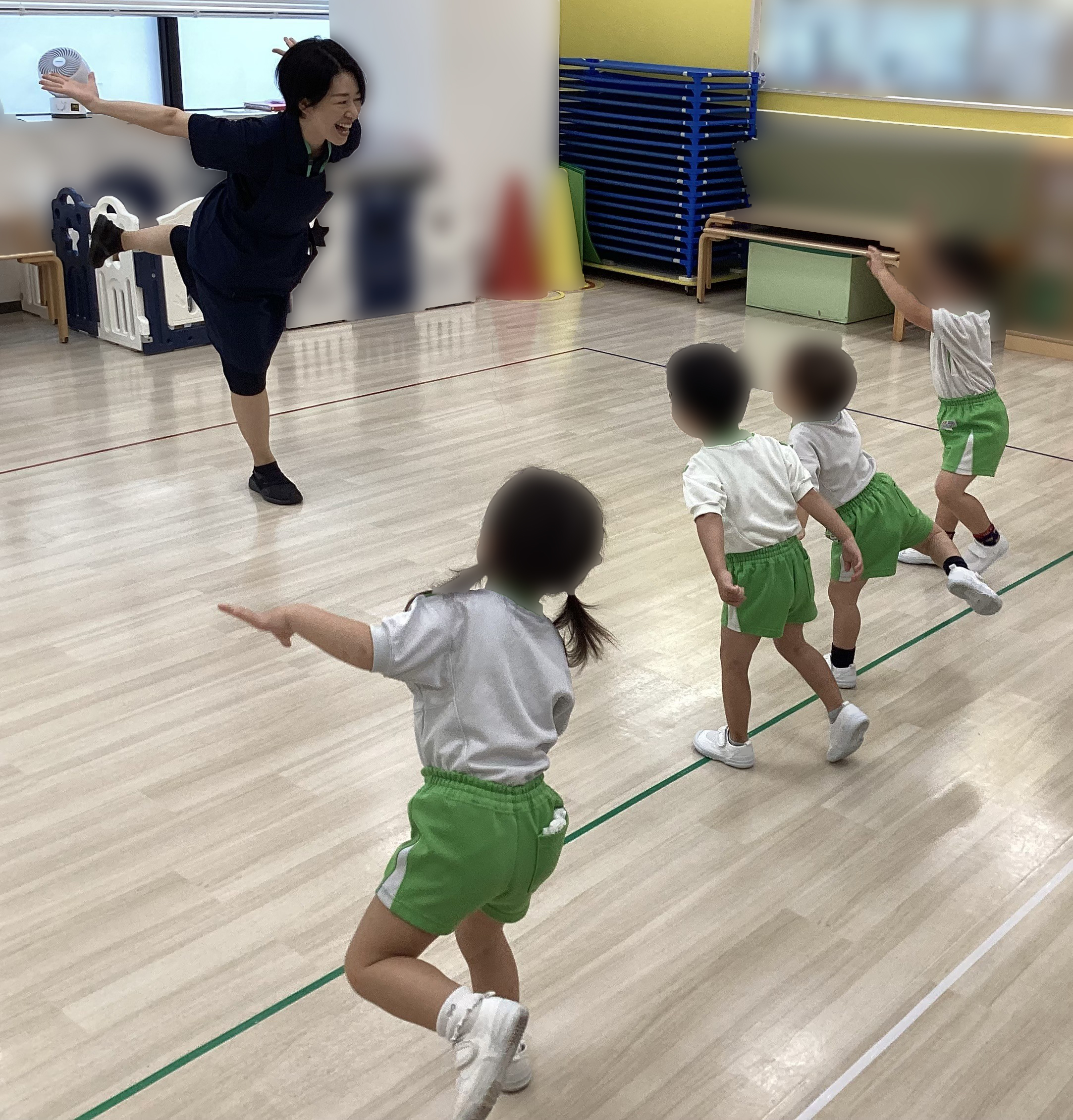 体幹がしっかりしてきてさまざまな動きに挑戦しているさくら組(2歳児クラス)。