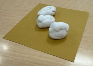もも組(1歳児クラス)では、粘土を使い、お月見のお団子を作っています。