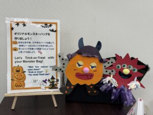 来月10月のハロウィンのお楽しみ講座では、英語の先生と一緒にモンスターバッグを作ります。